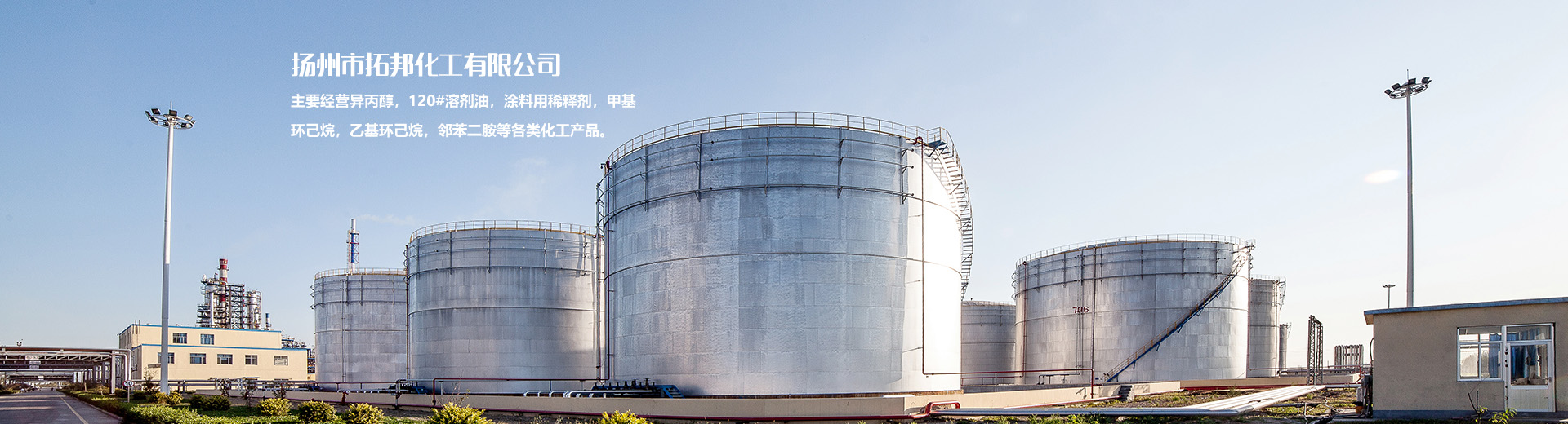 揚州市拓邦化工有限公司座落于歷史文化名城揚州市東郊,地理環境優越。緊鄰京滬高速、寧啟鐵路和蘇中機場,交通運輸十分便捷。 本公司主要經營異丙醇,120#溶劑油,涂料用稀釋劑,甲基環己烷,乙基環己烷,鄰苯二胺等各類化工產品。 公司秉承“誠信、專業、共贏”的經營理念,堅持以質量為本,...